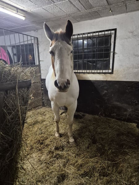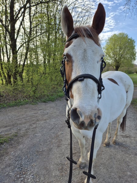 Zum Verkauf steht meine, am 20.05.13 geborene Paint Mix Stute Brada. Stm. 1,48 m. Western und Englisch ausgebildet. Wird zur Zeit aber nur leicht gearbeitet und überwiegend vom Boden aus. Sie geht gern ins Gelände. Sie ist kein Anfänger- oder Kinderpony und gehört in liebevolle aber erfahrene Hände. Das ist auch der Grund weshalb ich sie verkaufe. Ich brauche ein Pferd, dass auch für meine noch unerfahrene Tochter geeignet ist. Brada ist ein 1 Mann/Frau Pferd, dass sich klare Führung wünscht. Zur Zeit steht sie in einer kleinen gemischten Herde und kommt nur über Nacht in die Box.
