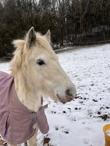 Kalima, geboren im Februar 2023, ist eine ganz besondere junge Dame mit einem unglaublich lieben und sanften Wesen. Mit ihrem hellen Fell, dem weichen Blick und ihrer freundlichen Ausstrahlung verzaubert sie jeden sofort. Aktuell ist sie ca 1,25m. Sie ist sehr menschenbezogen, neugierig und stets aufmerksam. Im Umgang zeigt sie sich brav, verschmust und unkompliziert. Das Führen am Halfter kennt sie bereits und macht dabei alles ganz gelassen und altersgerecht mit. Sie lernt schnell und möchte ihrem Menschen gefallen. Sie bringt beste Voraussetzungen mit, um später einmal ein treuer Freizeitpartner zu werden. Wir wünschen uns für Kalima ein liebevolles Zuhause, in dem sie weiter gefördert wird und einen Platz auf Lebzeiten hat.