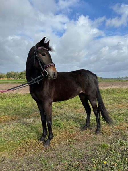 *płeć: klacz *maść: ciemno gniada *rasa: kuc *urodzona marzec 2023r. *spokojna przy zabiegach pielęgnacyjnych i kowalu, *jest nauczony podawania nóg, chodzenia na uwiązie i wiązania, *padokowana z innymi końmi, *chodzi przy bryczce w parze oraz pojedynku, *przyjęła jeźdźca i zaczyna pracę pod siodłem, Cena 1900€ do negocjacji Możliwy transport