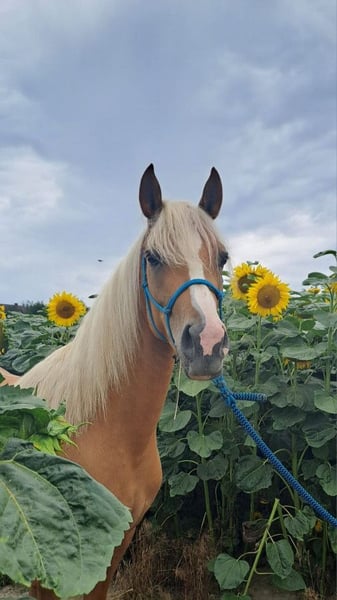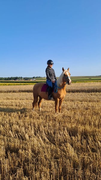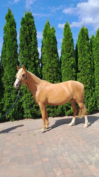 For sale: three-year-old pony mare, isabella color – directly from the breeder. Mother: pony 130 cm at the withers Father: stallion Daichi Dalvin, sold to the USA, competing in hunter events The mare has been in regular training since July – she walks in three gaits under a child, also in the field. She works in a rope halter, is learning to use a bit, and is ridden in both English and Western saddles. She is gentle, calm, curious, and energetic – perfect for children. Regularly vaccinated, dewormed, and sand-free, healthy and well-kept. Great for recreation and small sports.