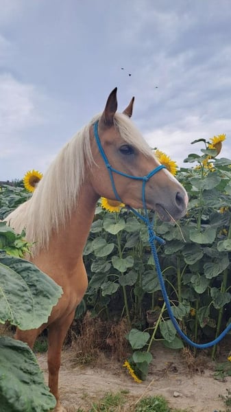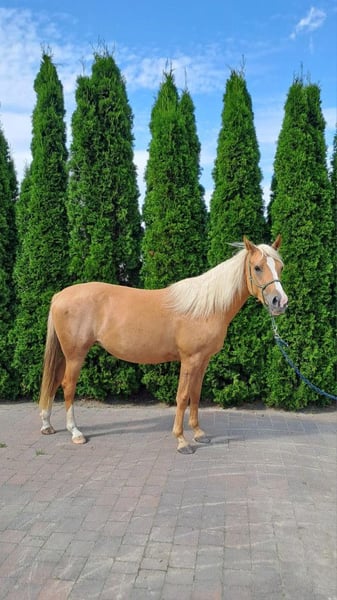 Zu verkaufen: dreijährige Stute Pony, isabellfarbig – direkt vom Züchter. Mutter: Pony 130 cm Stockmaß Vater: Hengst Daichi Dalvin, verkauft in die USA, startet in Hunter-Wettbewerben. Die Stute ist seit Juli im regelmäßigen Training – sie geht in drei Gangarten unter einem Kind, auch im Gelände. Sie arbeitet mit einem Knotenhalfter, lernt das Gebiss, geht sowohl im englischen als auch im western Sattel. Sie ist sanft, gelassen, neugierig und energiegeladen – ideal für Kinder. Regelmäßig geimpft, entwurmt und von Sand befreit, gesund und gut gepflegt. Perfekt für Freizeitsport und kleine Wettbewerbe.