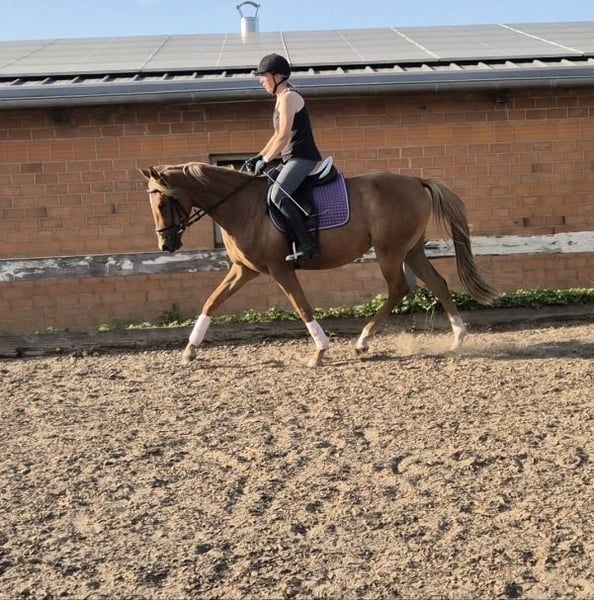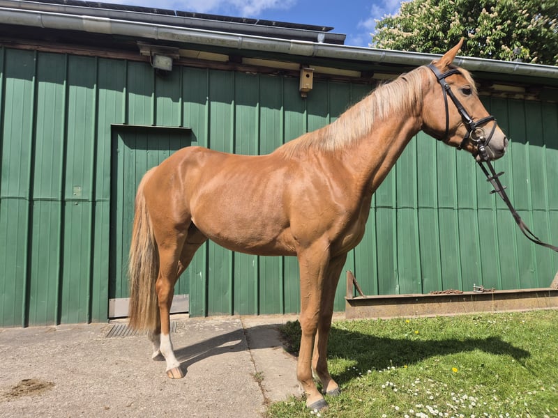 3-jährige bildschöne Fuchsstute zu verkaufen. Aktuell hat Sie ein Stockmaß von ca. 1,53m. Sie ist geimpft, regelmäßig entwurmt, super artig im Umgang und beim Schmied. Sie ist angeritten und hat den ersten Sprung unter dem Reiter gemacht, kennt Spaziergänge, Longe und Anhängerfahren. Sie ist langfristig und mit weiterer Ausbildung auch für unerfahrene Reiter geeignet. Ich sehe Sie auch als zukünftiges Kinder- und Jungendpferd bzw. auch für Kinderunterricht. Sie hat keine Unarten und ist gesund. Sie hat keinen Abstammungsnachweis (Vater: Anglo Araber, Mutter: Irisches Warmblut). Probereiten bis 65kg. (Sie wurde schon von Kindern geritten) Bei Interesse oder Fragen gerne jederzeit melden. 0173-1578042 oder 0172-4217818