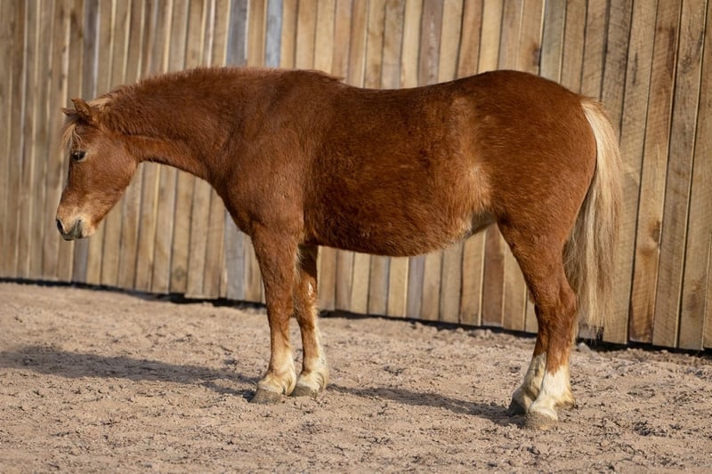 Smidge, yegua pony de 4 años, de 1,10 m, de color alazán