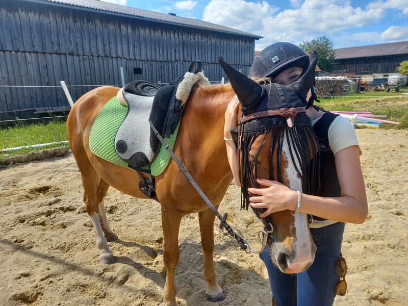 **Wunderschöne sensible Fuchs-Stute zu verkaufen!** Diese liebevolle Stute hat bisher leider nicht viel Gutes in ihren jungen Jahren erlebt. Sie ist als ehemaliges Kutschpferd sehr gelände-/ verkehrssicher und gut ausdauernd, jedoch trägt sie von der Vergangheit auch einige Narben körperlich und seelisch, weshalb sie nicht als reines Anfängerpony geeignet wäre. Für Pferdekenner mit feinem Gespür ist sie ein absoluter Glücksgriff. Durch ihren sensiblen, devoten Charakter macht sie viel Spaß, wenn man leichte Hilfengebung und eine feine Kommunikation bevorzugt. Sie könnte sicherlich nachdem sie Vertrauen gefasst und mit fortschreitendem Training, sehr gut als Kinderpony für schon sattelfeste junge Reiter verwendet werden, wenn eine fachkundige Person das Training begleitet. Aufgrund ihres tiefen Kalibers kann sie locker auch noch leichte Erwachsene Reiter tragen. Freizeitreiter, die gerne gemütlich ins Gelände gehen oder auch gerne einmal Gas geben möchten werden viel Freude an ihr haben, ebenso wie freizeitlich ambitionierte Dressurreiter, die ab und an auch gerne einmal springen. Sie ist gut erzogen, hat eine solide Grundausbildung in Horsemanship und beherrscht alle drei GGA unter dem Reiter. Weitere Infos, Fotos oder Videos gerne per Whats App. (Mit Schutzvertrag wird die Möglichkeit der Rückgabe geboten, um zu verhindern, dass sie zum Wanderpokal wird.)