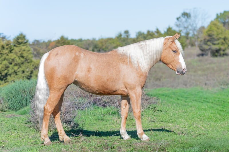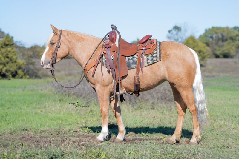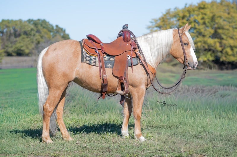 🎁 𝐈𝐍 𝐓𝐈𝐌𝐄 𝐅𝐎𝐑 𝑪𝒉𝒓𝒊𝒔𝒕𝒎𝒂𝒔 🎁 Happening now thru TUESDAY | DECEMBER 9th - Available EXCLUSIVELY on Ponybid's website! For more details and to register visit: www.Ponybid.com CONSIGNOR CONTACT: Jimmy Carsel 417-262-4935 LOCATION: Weaubleau, MO BREED: Pony REGISTERED: No REGISTERED NAME: High Beam COLOR: Palomino HEIGHT: 13.1 AGE: 4 GENDER: Mare High Beam is not your average pony; she is an absolute showstopper! She has a look that steals your focus and demands your attention. She stands 13.1h and has a chunky build, making her the perfect size to be ridden by children and most adults! She is gentle enough for any child who is familiar with horses, and large enough that they will not outgrow her. High Beam has one of the nicest sliding stops you will see out of any pony; she has all of the talent needed to go to the show pen and could be competitive in several events. She lopes even circles, picks up her leads on cue, has a nice flying lead change, and quietly crosses trail obstacles. I cannot put enough emphasis on how much raw, natural talent this pony has. She has a phenomenal disposition, making her just as pretty on the inside as she is on the outside! High Beam is user friendly, and versatile. She gets along well with intermediate to advanced children, and beginner to advanced adults. In the arena, she has been ridden at indoor and outdoor facilities in all types of footing where she was able to show off just how agile she is. She has ridden down trails in big timber where she crossed logs and water without hesitation and was exposed to all types of wildlife. She rides confidently through open fields where she has been used to gather cattle and rope a few calves. You can expect the same ride whether she is alone or in a group. She has ridden quietly through some of the roughest terrain you will find in the Midwest, along rocky bluffs that drop off 150 feet over a river. She has even ridden down the main street of a small town while vehicles and pedestrians passed by. High Beam is ready to be the all-around family horse or continue in training and prove just how competitive she could be in the arena. She learns new things quickly and willingly, has a good mind, and has been a pleasure to train. High Beam is the type of pony that everyone wants, but few can find. Her potential is exponentially endless; with her foundation, she can truly go any direction. Whether you want to carry our nation's flag at the local rodeo, compete in a trail class at the show, or would like her to pack your child on a weekend trail ride... She will do it ALL! She will be an excellent addition to anyone's program or family! She is respectful and easy to shoe, picking up all 4 feet without hesitation. She gets along well with pasture mates when turned out and is also comfortable when stalled. She easily loads into the trailer and hauls well. She stands wonderfully while tied and does not get impatient. High Beam is easy to catch wherever you find her, whether she is stalled or turned out. She has been around other livestock, small pets, wildlife, and even poultry. She is an easy keeper, and above all, easy going! She stands quietly to be bathed, groomed, clipped, braided, saddled, and bridled. Even with time off, while being kept in a box stall, you can expect her to ride off without issue. She is consistent, reliable, and safe. The only thing marish about her is how much heart and try she has, this mare truly aims to please. If you have questions about High Beam, or would like to meet her prior to the auction ending, please contact Jimmy at 417-262-4935.