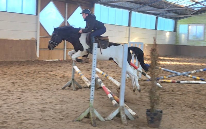 Schickes, auffälliges Endmaßpony mit sportlichem Körperbau, viel Ausstrahlung und vor allem echter Begeisterung für den Springsport. Sie bringt reichlich Talent am Sprung mit, ist aufmerksam, ehrgeizig und zeigt dabei stets Lust, ihre Aufgabe gut zu machen. Unter dem Sattel ist sie gut angeritten. Dressurmäßig lässt sie sich ordentlich arbeiten und wird perspektivisch sicher auch eine E- bis A-Dressur absolvieren können, ihre klare Stärke liegt jedoch im Springen. Im Training springt sie bereits kleine Parcours und zeigt dabei Übersicht, Vermögen und einen positiven Zug nach vorne. Bei weiterer, altersgerechter Förderung ist sie ein Pony mit sehr guten Perspektiven für den Turniersport, insbesondere im A- bis L-Bereich. Im Umgang präsentiert sie sich unkompliziert und brav. Sie geht artig und unerschrocken ins Gelände, zeigt sich dort mutig und zuverlässig. Mit anderen Pferden ist sie verträglich, kennt sowohl Paddockhaltung tagsüber als auch Boxenhaltung über Nacht. Charakterlich bringt die Stute Geist, Ehrgeiz und einen eigenen Kopf mit – sie möchte beschäftigt und gefördert werden. Daher ist sie derzeit kein Anfänger- oder reines Kinderpony, sondern richtet sich an einen Reiter oder eine Familie mit etwas Erfahrung und sportlichen Ambitionen. Geführt oder im ruhigen Rahmen kann selbstverständlich auch mal ein Kind auf ihr sitzen, als klassisches Anfängerpony ist sie jedoch (noch) nicht gedacht. Ein sportlich veranlagtes, modernes Endmaßpony mit viel Potenzial, das bei weiterer Förderung schnell Freude und Erfolg im Springsport bringen kann. 5j Endmaßpony, Stute, 1.47m Klinische Aku vorhanden Video: https://youtu.be/Dqpm945Z49I?si=LjCjBW78fVqXsCwc Noch mehr Fotos, Videos und kleine Einblicke in den Alltag unserer Pferde gibt’s auf Instagram: [maresi_lange]. Schauen Sie gern vorbei und lernen Sie unsere Vierbeiner schon vorab ein bisschen kennen. You can find more photos, videos and little insights into the everyday life of our horses on Instagram: [maresi_lange]. Feel free to take a look and get to know our horses a bit better in advance.“ Weitere Pferde auf meiner Homepage MaresiLange.de oder auf Anfrage. Die Beschreibung des Pferdes beruht auf subjektiven Eindrücken und Erfahrungen unsererseits und ist keine Beschaffenheitsvereinbarung und Zusicherung von Eigenschaften. Probereiten erfolgt auf eigene Gefahr. Verkauf erfolgt im Auftrag. Für das Vorstellen/ Probereiten des Pferdes erlauben wir uns eine Aufwandsentschädigung in Höhe von 30 Euro zu berechnen. Diese wird natürlich bei Kauf des Pferdes verrechnet.