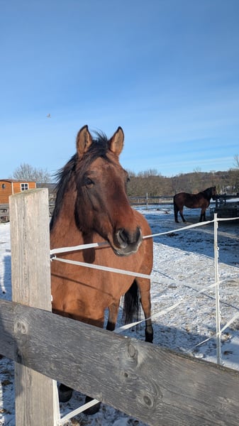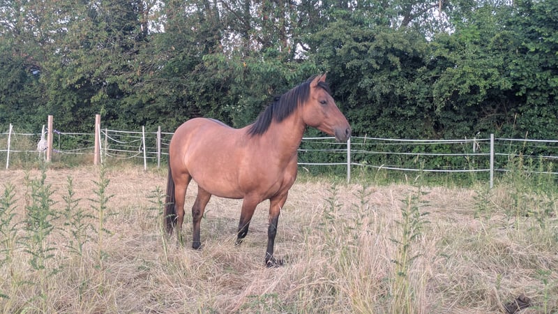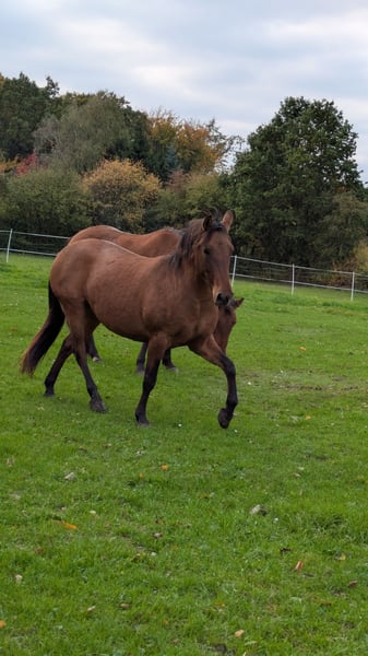 Nach langer Überlegung haben wir uns entschieden unser Jungpferd in fördernde Hände zu geben. Saphira wird dieses Jahr 6 , sie kennt Tierarzt, Hufschmied, Anhänger, longieren mit und ohne Reiter und war auf ein paar kleinere Ausritten im Wald mit. (Ausrittdauer zwischen 30 Minuten und 1 Stunden,wobei dann oft geführt wurde) Sie kennt Sattel und Trense und ist beim Ausritt auch artig in allen drei Gangarten mit anderen Pferden zusammen gelaufen. Spaziergänge hat sie auch alleine gemacht, wobei in letzter Zeit nicht so oft. Reitplatz wurde sie aktuell nur longiert drauf. Sie ist also perfekt um jetzt selbst direkt so Durchzugstarten mit der gewünschten Ausbildung wie man es sich vorstellt. Vom Wesen her ist sie eher unerschrocken und geht erstmal offen auf alles drauf zu. Sie kennt Kinder, Hunde, Trecker und Co. Wir wünschen uns jemand der jetzt die Zeit hat sie zu fördern und arbeiten, da wir es mit unserem Alltag einfach nicht vereinbart bekommen. Mama ist deutsches Reitpferd, steht bei uns und kann auch kennen gelernt werden, Papa war Konik. (Saphira war ein nicht geplanter Weidenunfall) Durch den Konik ist sie eher ein Spätentwickler,weshalb sie reiterlich erst letztes Jahr langsam mit angefangen wurde. Es kann auch gut sein, dass noch 2-3 cm in Höhe kommen. Generell hat sie bei uns eher ein Lotterleben, weshalb sie schonmal auf komische Ideen kommt (Werkzeugklau bei der Stallarbeit) Sie ist regelmäßig beim Schmied und entwurmt. Sie muss nicht dringend vom Hof, da wir einen eigenen kleinen Offenstall haben, sie brauch aber dringend Beschäftigung. Sollte alles passen, kann man also ganz in Ruhe schauen zu wann man sich das Pferdchen holen möchte. Platz vor Preis