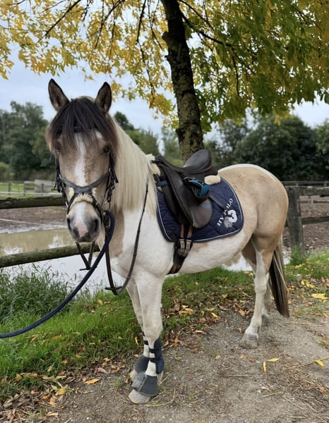 Kucykowa klacz, 5-letnia, szuka kochającego domu. Imię: Betty Kolor: Łaciatka beżowo-biała Wzrost: około 147 cm Wiek: 5 lat Płeć: klacz Urocza Betty przyciąga wzrok i zachwyca swoim łagodnym, pewnym siebie charakterem. Charakter: * Kochana, niezawodna i odważna * Na początku nieco nieśmiała i potrzebuje czasu, aby zaufać Stopniowo buduje silną więź ze swoją opiekunką Szczególne cechy: * Bezproblemowa w obsłudze na boso i podczas czyszczenia kopyt * Chętnie współpracuje podczas załadunku i jest posłuszna w codziennym kontakcie * Idealna dla jeźdźców rekreacyjnych szukających wrażliwej i wiernej partnerki Dla Betty marzę o kochającym domu, gdzie ktoś doceni jej łagodny charakter, a jednocześnie będzie ją dalej rozwijał. Dostępne są filmy z jazdy oraz więcej zdjęć. W razie zainteresowania lub pytań chętnie służę pomocą.