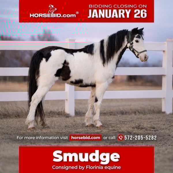 𝐉𝐀𝐍𝐔𝐀𝐑𝐘 ⭐️𝑨𝒍𝒍 𝑺𝒕𝒂𝒓 𝑳𝒊𝒏𝒆𝒖𝒑⭐️ Happening now thru MONDAY | JANUARY 26th - Available EXCLUSIVELY on HorseBid's website! For more details and to register visit: www.Horsebid.com CONSIGNOR CONTACT: Florinia equine 572-205-5282 LOCATION: Guthrie, OK BREED: Pony REGISTERED: No REGISTERED NAME: Smudge COLOR: Black white overo HEIGHT: 11.2 AGE: 7 GENDER: Mare ✨ 7-Year-Old 11.2h Pony Mare | Gorgeous, Unique, True Hunter Prospect ✨ If you’re searching for a truly special small pony that stands out in every way, this gorgeous mare is one you don’t come across often. Standing 11.2 hands and 7 years old, she is beautifully marked, extremely eye-catching, and unique, with the kind of presence that draws attention wherever she goes. She is a hard-to-find combination of looks, talent, and temperament — small in size, big in quality. She has been ridden English, jumps small rails comfortably, and boasts amazing movement for a pony her size — soft, balanced, and fluid. She is a true hunter prospect with the step, rhythm, and expression to shine in the show ring with continued development. Equally impressive is her mind. This mare is outstanding outside, confident and relaxed on the trail, and genuinely takes care of kids. She is honest, forgiving, and kind — the type of pony parents appreciate and children build confidence on. Whether you’re looking to step into the hunter ring, enjoy local shows, or have a safe, beautiful pony for trails and family enjoyment, she fits the bill effortlessly. ✨ Highlights: • 7-year-old mare • 11.2 hands • Gorgeous, unique, and eye-catching • English trained • Jumps small rails • Amazing movement • True hunter prospect • Excellent on trails • Kid-safe and trustworthy • Stands out in and out of the arena This is a rare opportunity to own a standout pony with both the beauty and brains to match — a size that’s hard to find and a quality that’s even harder to replace. Call Megan 572-205-5282 for more information or if you want to FaceTime this gorgeous girl if your far away❤️