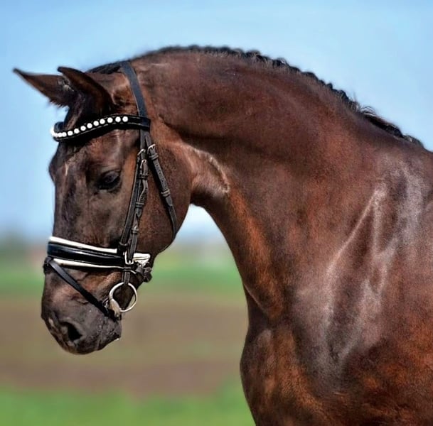 SÃRI....an ultra-gentle, 7-year-old, approximately 145 cm tall, and absolutely reliable, very calm mare in the desirable color dark chestnut, is looking for her FOREVER HOME. This exceptionally friendly, balanced, and strong-minded lady is ideal for beginners, children, retirees, or even insecure and anxious riders. She is also perfect for therapeutic riding due to her reliability and calmness. Sãri is well-trained, easy to ride, and top reliable both in the arena/field and on the trails. She is not spooky and completely traffic-safe. In daily handling, she is a true gem. She loves to be groomed and pampered and has the patience of an angel. Even the smallest children can safely groom and lead her. This beautiful mare has no vices whatsoever. If you like this super sweet and stunning princess, please contact me with your phone number so I can get in touch with you as soon as possible.
