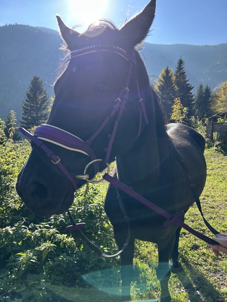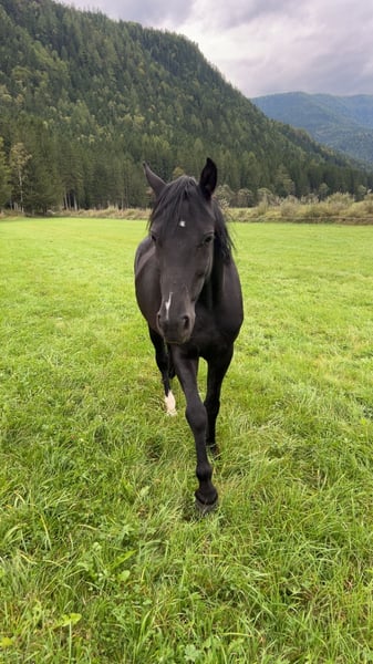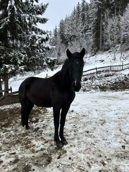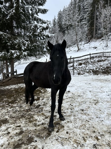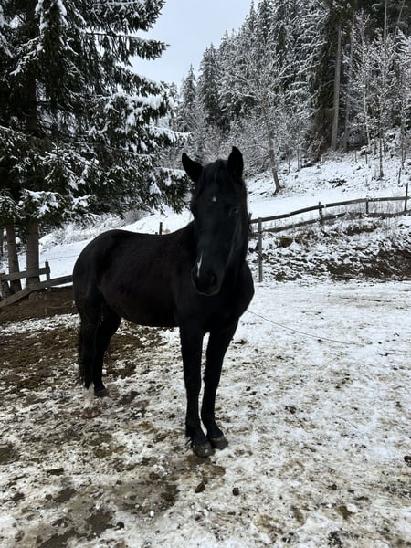 Hungarian Riding Pony mare seeking new owner Hera is a 7-year-old black riding pony mare, approximately 146 cm tall. She requires a calm and consistent handler. She is not the easiest to handle, as she is very cautious and timid. Unfortunately, she has had negative experiences in the past, so she needs a lot of patience and time to relearn trust and new skills. She has been backed but has not been ridden regularly in recent times. Her rank is low. NOT suitable for beginners. NOT a children's pony. Not a desperate sale. Quality comes first.