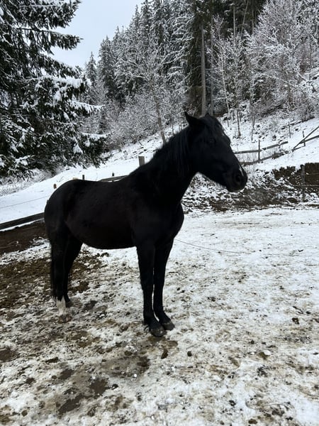 ungarisches Reitpony sucht neue Besitzer Hera ist eine 7 jährige schwarze Reitponystute. Sie ist ca. 146cm groß. Braucht eine ruhige und konsequente Hand. Leider nicht sehr einfach im Umgang. Sie ist sehr skeptisch und ängstlich. Hat leider schlechte Erfahrungen gemacht und braucht daher viel Geduld und muss vieles neu lernen. Angeritten aber schon länger nicht mehr unterm Sattel. Rangniedrig. KEIN Anfängerpferd. KEIN Kinderpferd. KEIN Notverkauf. Platz vor Preis.