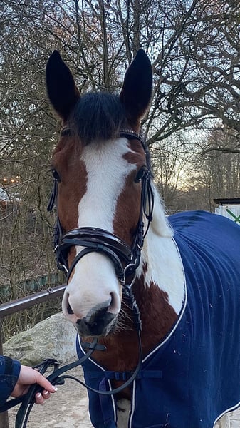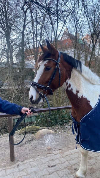 Hübsche Scheckstute sucht ihr neues Zuhause. Melody ist brav im Umgang, mit klarem Kopf und möchte gefallen. Sie hat ihr Herz am rechten Fleck. Sie sucht den Kontakt zum Menschen und freut sich über Kuscheleinheiten. Sie wurde von Kindern geritten und kennt den Umgang mit Kindern. Sie genießt es, geputzt zu werden, bleibt brav stehen beim Satteln und Aufsteigen. Fein zu reiten in allen 3 Grundgangarten. Sie ging in der Gruppe ins Gelände, sprang kleine Hindernisse und kennt das Reiten auf dem Platz und in der Halle. Sie ist gesund, rehefrei, ekzemfrei, barhuf. Sie versteht sich mit anderen Stuten und Wallachen. Aktuell steht sie nachts in der Box. Sie kennt Hunde und landwirtschaftliche Maschinen. Wir können uns Melody aufgrund ihres Alters als Mutter-Kind-Pony gut vorstellen oder für größere Kinder, die etwas Reiterfahrung haben.