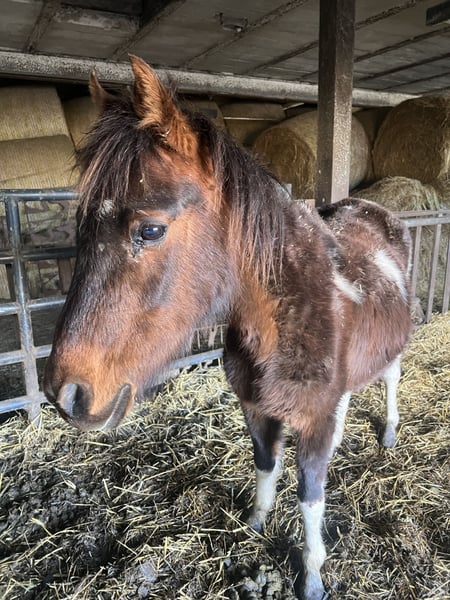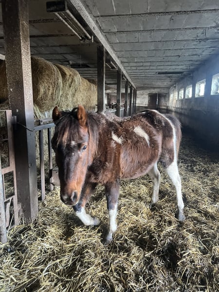 Name: Mona Born: 2018 Breed: Pony Cross (with Arabian influence) Gender: Mare Color: Brown Tobiano Status: Pregnant Mona is an absolutely gentle, calm, and reliable mare, primarily used in our breeding program. She is currently pregnant and will be sold in foal. As a mother, she impresses in every aspect: - reliably foals out alone - cares for her foals excellently - very caring and uncomplicated In handling, she is extremely gentle, human-oriented, and a pleasure to work with on a daily basis. She has been ridden in the past but is not currently under saddle with us. With a calm and suitable rider, she can easily be retrained for riding again. Ideal as a broodmare or as a future leisure partner. The sale is due to age and as part of a reduction of a well-established horse herd built over many years. This is explicitly not an urgent sale.