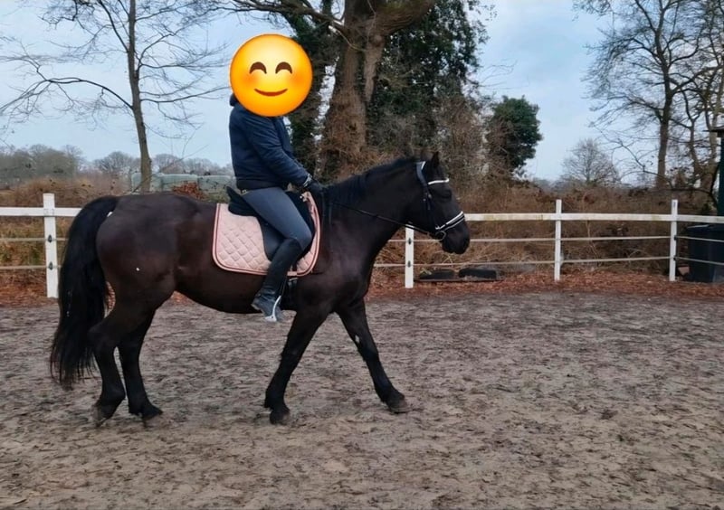 Stute, 8 Jahre, 150 cm Schönes kräftiges Pony. Bei entsprechendem Muskulaturaufbau deckt sie auch einen Erwachsenen gut ab. Kennt Sattel, Trense und Reitergewicht im Schritt. Sehr sitzbequem. Spaziergänge im Gelände kennt sie auch und ist dort nicht schreckhaft. Schönes, unverbrauchtes Pony zum selber ausbilden. +49172 1716527