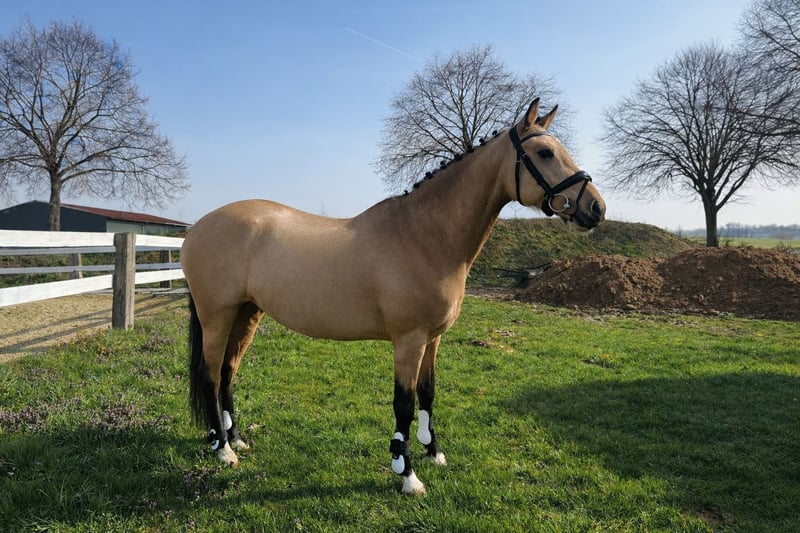 Unsere hübsche Deutsche Reitpony Stute „Sonnenschein“ (9 Jahre, ca. 1,52 m Stockmaß) sucht ein neues, passendes Zuhause, in dem sie weiter gefördert und gefordert wird. Sonnenschein ist auf A-Niveau geritten und zeigt bereits erste Ansätze in Richtung L-Lektionen, wie zum Beispiel Außengalopp. Sie arbeitet motiviert mit und zeigt viel Freude an der Arbeit mit ihrem Menschen. Mit der richtigen Reiterhand macht sie viel Spaß und bietet eine schöne Grundlage, um sich gemeinsam weiterzuentwickeln. Im Gelände, in der Halle sowie auf dem Reitplatz zeigt sie sich grundsätzlich brav und zuverlässig. Dennoch ist Sonnenschein kein Anfängerpony. Sie benötigt einen ruhigen, erfahrenen Reiter, der ihr Sicherheit gibt und ihr den Weg klar vorgibt. Manchmal meint sie Dinge zu sehen, die für andere unsichtbar sind, wodurch sie gelegentlich einen kleinen Satz zur Seite machen kann – lässt sich aber sofort wieder gut kontrollieren. Charakterlich ist Sonnenschein eine brave, aber temperamentvolle Stute, die gerne arbeitet und ihrem Menschen viel Freude bereiten kann. Mit der passenden Bezugsperson entwickelt sie sich zu einer tollen Partnerin für Sport und Freizeit. Sie ist gesund, regelmäßig geimpft und entwurmt. Der Zahnarzt kommt regelmäßig, ebenso wird sie regelmäßig osteopathisch behandelt, sodass sie rundum gut betreut ist. Eine Besonderheit: Sonnenschein lässt sich die Hufe nur von einer weiblichen Hufschmiedin bearbeiten. Wir wünschen uns für sie ein liebevolles Zuhause bei einem erfahrenen Reiter, der ihr Sicherheit gibt und Freude daran hat, mit einem motivierten Pony zu arbeiten. Für Videos und weitere Fragen gerne telefonisch melden
