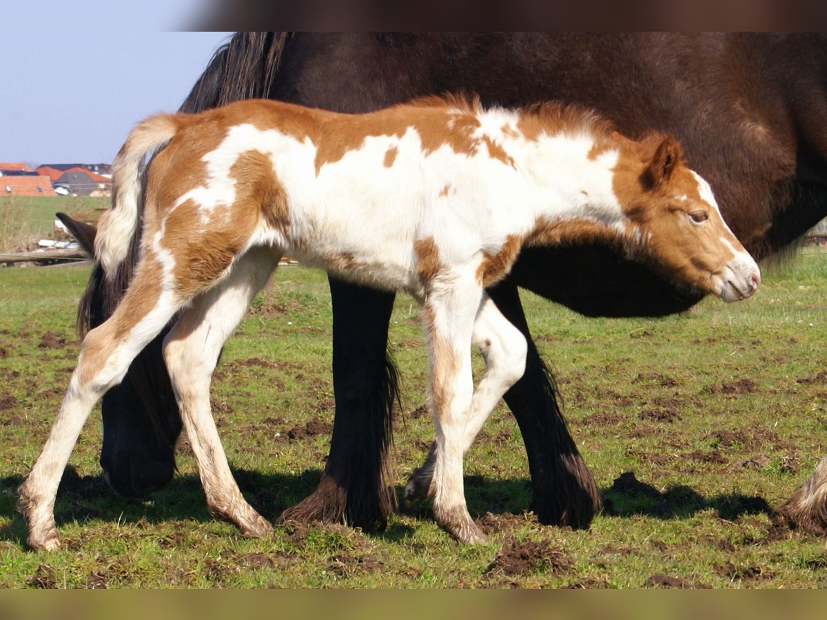 Fuchsschecke mit bernsteinfarbigen Augen, Vater ist ein Painthengst 150 cm, die Mutter eine kräftige Tinkerstute 150 cm, wüchsiges kräftiges Fohlen, aufgeweckt und neugierig, wächst im Herdenverband mit anderen Fohlen zusammen auf, regelmäßig entwurmt, es gibt bereits Nachkommen aus dieser Anpaarung welche besichtigt werden können, es ist immer ein gelungener Mix