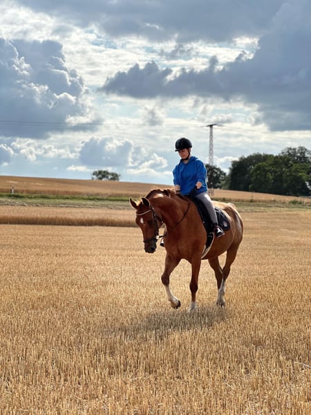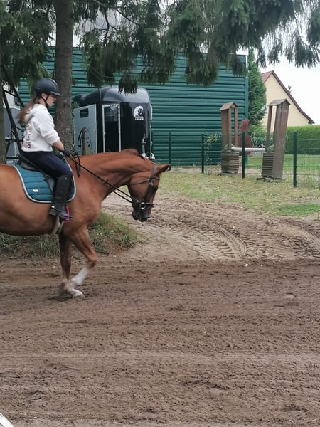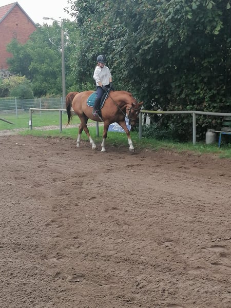 On behalf of this 13-year-old gelding, who is ridden in leisure riding, he is well-mannered in handling, goes out alone on trails, and is not spooky; even in a group, he remains calm. In the herd, he has a rather low rank. He is familiar with both box stalls and open stables. An ideal leisure partner that can be left alone without any problems when time is limited, he can always be ridden reliably. Regular farrier visits, has always been healthy and has no allergies. Occasionally exhibits head shaking while riding.