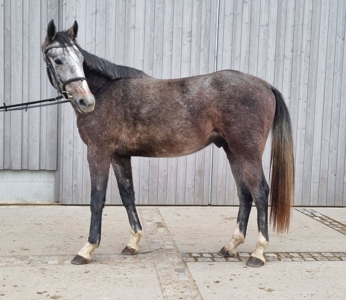 For Sale: Mecklenburg Warmblood Gelding – A promising show jumper, versatile all-rounder, or partner for advanced leisure riding. We are offering an elegant, blood-typed Mecklenburg Warmblood gelding, born in 2023. This handsome grey impresses with his friendly nature and striking appearance. Standing at 16.1 hh, he provides the perfect size for ambitious riders seeking a versatile jumper, eventing horse, or high-quality leisure horse for the future. The young gelding already shows considerable talent in jumping and has a promising basic training background (groundwork, lunging, free jumping). His agility, jumping ability, eagerness to learn, and lovable character make him an ideal partner for sport and leisure. His dam has received 9s in free jumping at the mare performance test. The horse is healthy, regularly vetted, and ready for a new challenge. He was raised in our herd and lives in an active stable with 20 horses. He is familiar with the feed automat, farrier, grooming, etc. Please feel free to contact me for more information or to arrange a visit. Get to know this promising young horse! Current X-rays available from December 2025. Castrated in December 2025.