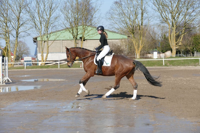 Mambo: - Langbeiniger Reitpferdetyp mit besonders schönem Seitenbild - Mit drei reell guten Grundgangarten - Leichtrittig und sitzbequem - Im Umgang, sowie in der Arbeit mit wunderbarem Interieur - Ein- & Zweipännig gefahren - Mambo ist im Gestüt Ganschow geboren, aufgewachsen und schonend ausgebildet