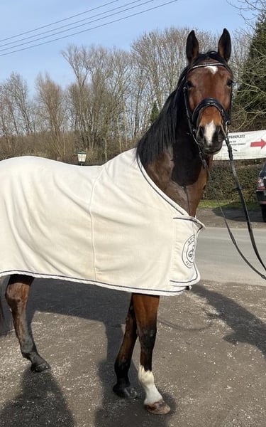 Met pijn in het hart verkoop ik mijn 5-jarige ruin, omdat ik hem helaas niet meer de tijd kan geven die hij verdient. Hij verdient een eigenaar die hem verder kan stimuleren, opleiden en samen met hem van de ontwikkeling kan genieten. De ruin is zachtjes aangezet op vierjarige leeftijd en bevindt zich op een leeftijdsgerichte opleiding. Met een actuele stokmaat van ongeveer 1,62 m heeft hij een zeer aangename en mooie grootte. Afstammend van Balou du Rouet x Lancer II, beschikt hij over uitstekende eigenschappen voor de springsport. Tijdens het vrijspringen toont hij veel vermogen, overzicht en een zeer goede werkhouding. Eerste sprongen onder het zadel doet hij braaf, attent en probleemloos. Wat vooral opvalt, is zijn evenwichtige, mensgerichte karakter. Hij is altijd vriendelijk in de omgang, braaf onder het zadel en vertoont geen ongewenst gedrag zoals bokken of steigeren. Ook in het terrein is hij betrouwbaar en kalm. Door zijn rijbaarheid en oprechte aard is hij zeer waarschijnlijk ook geschikt voor jonge, talentvolle ruiters of ruiters met de juiste ondersteuning. In de dagelijkse omgang is hij makkelijk in de omgang – of het nu gaat om poetsen, opzadelen, hoefsmid of laden. Het is voor mij erg belangrijk dat hij uitsluitend in goede en langdurige handen komt. Handelaren en snelle doorverkoopers worden uitgesloten. Ik zoek een betrokken, betrouwbare persoon die plezier heeft in een eerlijk, talentvol jonge paard. Bij serieuze interesse hoor ik graag van u.