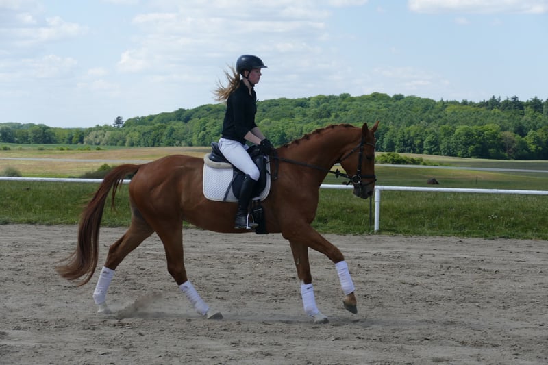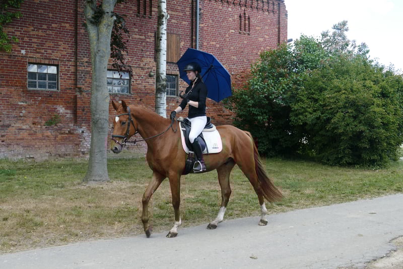 Memory: - Langbeiniger eleganter Reitpferdetyp - Drei gut zu sitzende Grundgangarten - Mit vielseitiger Ausbildungsperspektive - Memory ist im Gestüt Ganschow geboren, aufgewachsen und schonend ausgebildet