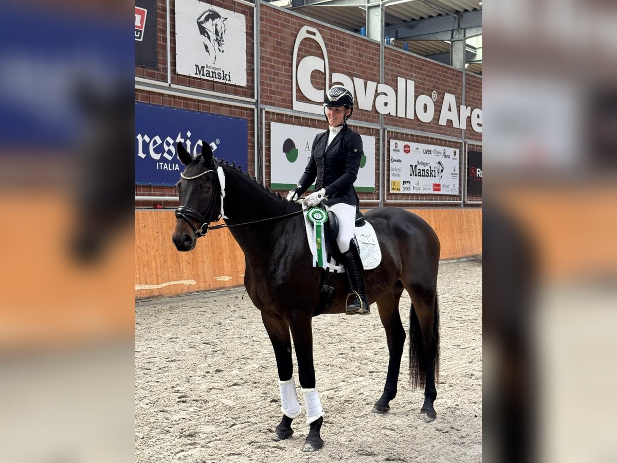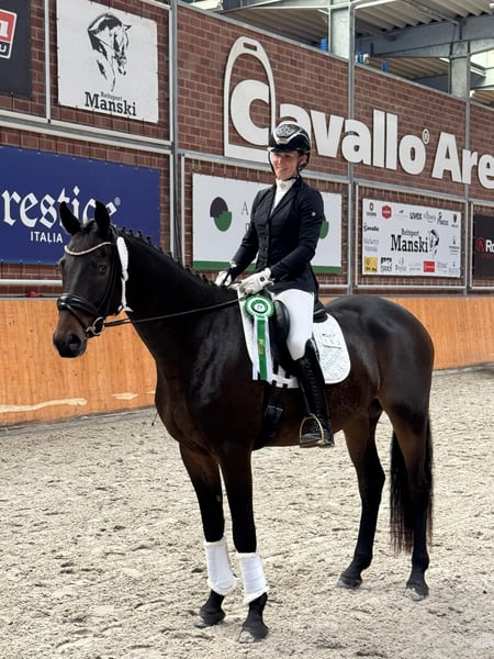 Monsun: - Moderner Reitpferdetyp in dunkler Jacke - Mit ausgezeichnetem Interieur und Qualität in allen drei Grundgangarten - Unter dem Sattel altersgemäß in Richtung Drpf: L - Bisher in Reitpferde und Dressurpferde A platziert - Vater Millennium Star ist Grand Prix erfolgreich, die Mutter Silbermond hat mit Silberglanz auch schon ein Grand Prix Pferd gebracht - Sicher gefahren im Straßenverkehr und auf den Ganschower Stutenparaden in der großen Fahrquadrillie - Monsun ist im Gestüt Ganschow geboren, aufgewachsen und schonend ausgebildet