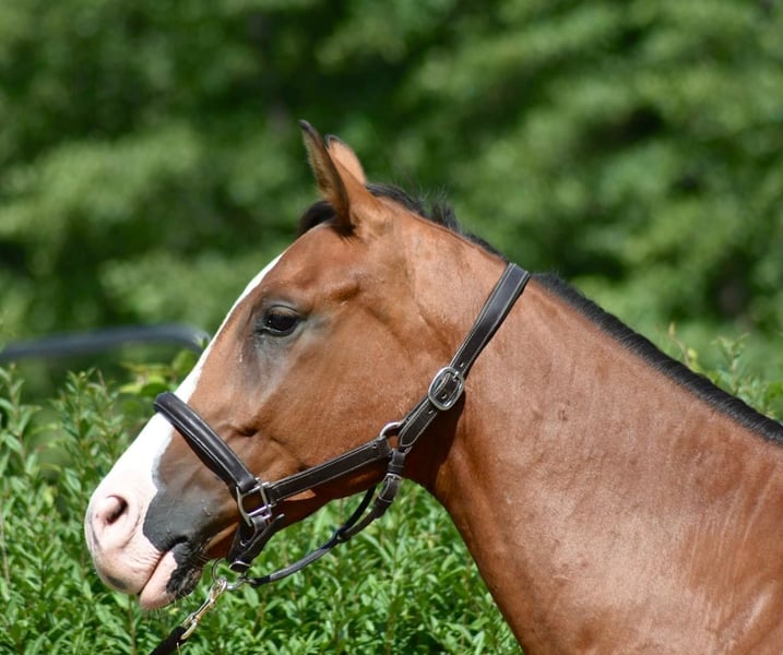 Hugo is show jumping ready and jumps with great technique and a lot of scope. Half-sister placed up to S** level. He is very well-behaved and extremely rideable.