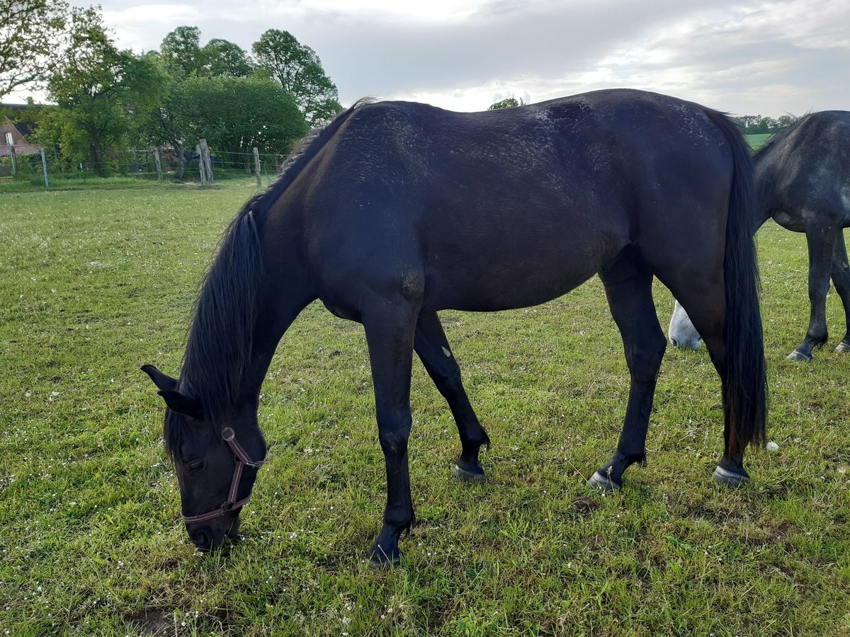 Zum Verkauf steht ein 5-jähriger Wallach mit bestem Dressurpedigree (San Amour/Fürstenball). SIr Anthony kommt in der Rappfarbe daher. Er war 2020 Elitefohlen und wurde mit den Noten (8,5/8,5/8,5) bewertet. Seine Mutter Fairlady ist Staatsprämienstute und selber bis L-Dressur erfolgreich. Sir Anthony ist altergemäß gefördert und verfügt über drei ansprechende Grundgangarten. Kontakt: Annekatrin Kabbe Mobil: 0162 4580605