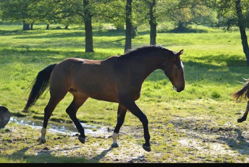 After long consideration, I have made the difficult decision I am looking for a loving new home for my wonderful Mecklenburg gelding Aris (born on March 21, 2018), standing at 1.73 cm tall. I raised him myself – his pedigree leaves nothing to be desired. Father: Arko Junior Mother: Pinocchio – Pilot Reason for sale: Aris has a lot of energy when riding, which unfortunately does not suit my herniated disc :-( And since he is unfortunately not being challenged and exercised enough with me, I am looking for a nurturing home for further training! This is not an urgent sale, and he will not be given away! He needs a person who enjoys working with him and can further develop and train him as a rider! Whether in everyday handling, with the farrier, at the vet, or during deworming, he is an absolute treasure and can be touched everywhere. He loves being in the spotlight, receiving a lot of attention and love; he is quite the little clown. However, when riding, he requires an experienced rider who can assert themselves, support him well, and tell him what to do. Training & Use: Aris has grown up in a robust environment; he has been outside in mixed herds in all weather conditions during winter on 3 hectares and in summer on 11 hectares of boys' pasture. He was castrated on September 3, 2020. He was gently started under saddle at 4 years old. Groundwork, Double lunge, Driving from the ground, Dual lanes, Desensitization training. Aris is primarily ridden in the arena and in groups out on trails! He is never malicious or dangerous; however, he is NOT a beginner’s horse and needs an experienced rider. Aside from the "normal" pasture or stable injuries, he has never been sick or injured while with me. Health & Care: Farrier every 8 weeks, he is barefoot on large, healthy hooves. Just had a dental check-up in May 2025. Osteopath visit was also just completed (August). I am only selling him as a leisure horse, as that is all he has been for me, and he has no competition experience. With the right rider and appropriate support, participating in small competitions is certainly conceivable. For him, I wish for a nice home with plenty of turnout and pasture time, where he is not just treated as a sports device or performance athlete. A meet-and-greet and trial ride, which takes place at your own risk, is possible by arrangement... Location: near 19230 Hagenow Best regards, Anja