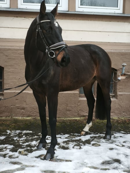 Bildschöner, moderner Sportler mit guten Grundgangarten und toller Rittigkeit. Im Parcours mit Vermögen, Geschick und guter Einstellung unterwegs. Bereits L gewonnen und M im Ausland fehlerfrei vorgestellt ( wohl auch platziert). Im Umgang sehr brav und unkompliziert. Auch dressurmäßig schön zu reiten. *2018 , v. Diarano x Landrebell, ca. 1.67m Preisrahmen 10000 - 15000 € Video: https://youtu.be/xCnU0p-diAI?si=prkazKFm-PYrItMf Turniervideo auf Anfrage Noch mehr Fotos, Videos und kleine Einblicke in den Alltag unserer Pferde gibt’s auf Instagram: [maresi_lange]. Schauen Sie gern vorbei und lernen Sie unsere Vierbeiner schon vorab ein bisschen kennen. You can find more photos, videos and little insights into the everyday life of our horses on Instagram: [maresi_lange]. Feel free to take a look and get to know our horses a bit better in advance.“ Weitere Pferde auf meiner Homepage MaresiLange.de oder auf Anfrage. Die Beschreibung des Pferdes beruht auf subjektiven Eindrücken und Erfahrungen unsererseits und ist keine Beschaffenheitsvereinbarung und Zusicherung von Eigenschaften. Probereiten erfolgt auf eigene Gefahr. Verkauf erfolgt im Auftrag. Für das Vorstellen/ Probereiten des Pferdes erlauben wir uns eine Aufwandsentschädigung in Höhe von 30 Euro zu berechnen. Diese wird natürlich bei Kauf des Pferdes verrechnet.