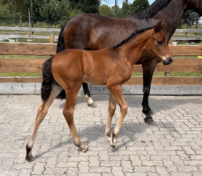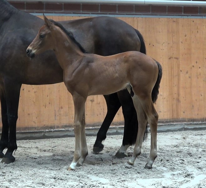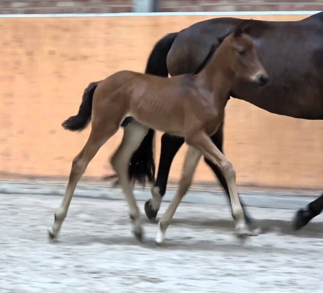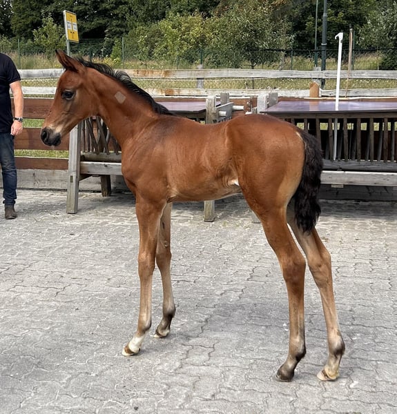 Go for Gold, is a very modern, correct colt with good movements by Go for Romance (Governor - Fürst Romancier - Sir Donnerhall I) out of a (Sandro Hit - Donnerhall - Rohdiamant) dam. He knows the foal ABC, is regularly dewormed, from 12/24 the young man can move into his new home. Go for Romance PS is currently placed up to elementary level dressage horses, his granddam Gesina is the dam of For Romance I & II. Dam Saphira M is the full sister to San Francisco OLD who is successful up to Inter I level. She now has an offspring from the mating with Secret who has reached advanced level. Granddam Rosenfee is the dam of Sancisco OLD who is also competing up to Grand Prix level under Carrie Schopf. A highly interesting colt for breeding and sport. Please do not hesitate to contact us for further information or to make an appointment to get to know him.