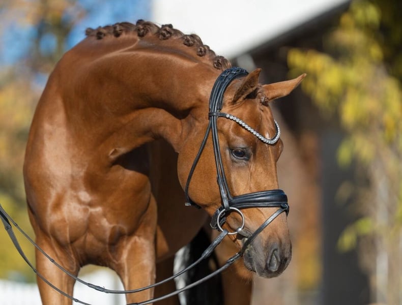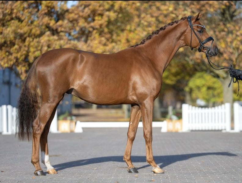 Mecklenburger Warmblood Stallion – Chestnut, born 2023 For sale is a promising Mecklenburg Warmblood stallion, foaled in 2023. This young stallion shows great potential for the future. He impresses with his friendly temperament, willingness to learn, and good work ethic. Ideal for ambitious riders seeking a talented young stallion. His dam has been successful up to dressage horse level L, and his maternal sister has achieved success up to S* level. If interested, please feel free to call or contact me via WhatsApp. Videos can be sent easily via WhatsApp. Very good TÜV! TEL.: +49 173 2192361