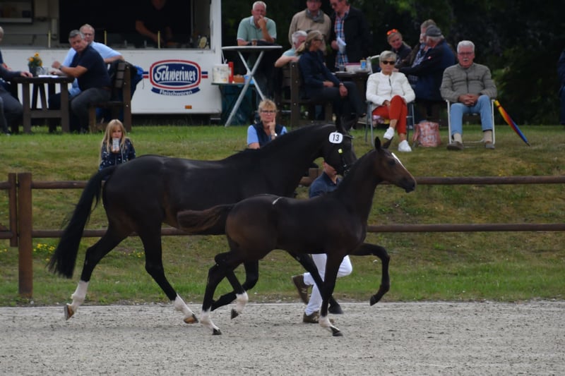 Champion foal at the State Elite Foal Championships 2023 in Groß Viegeln. Full siblings of the mother see below, very successful! Licensing winner, participation in the Bundeschampionat and young dressage world championship. The colt of Damaschino is elegant, large, modern and is equipped with 3 very good GGA! He is typey and has a great character. In 2015, the dam -Christella- became a state premium mare and winner at the state elite mare show in Mühlengeez. She already has a daughter (Belladonna H) who has been awarded a state premium and is successful in sports. The grandmother Railina already has 2 licensed sons -full brothers- in Mecklenburg. The first licensed son necklace was a champion stallion at the licensing in Redefin in 2013. Subsequently, he was stationed at the Sprehe stud farm and qualified for the Dressage World Championship for young horses in Emerlo in 2016 and successfully participated. Another full sister -Christabelle- took part in the Bundeschampionat at the age of 5 in 2018 and already has first placings in S-dressage under Friederike Tebbel.