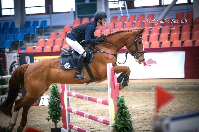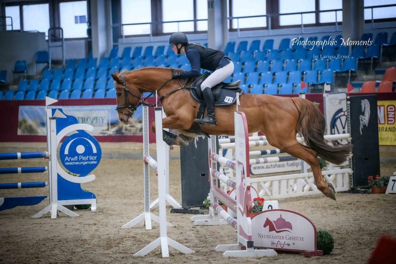 Carriba is an 11-year-old mare of medium build. She is well-behaved and easy to handle. In dressage, she is solidly trained, and performing movements such as backing up, flying changes, and counter canter pose no problems for her. In show jumping, she has placed with a junior rider in A-level competitions. Carriba is looking for a new home where competitive riding is not the top priority. She is the ideal partner for elevated leisure riding, where one can have fun in their free time while also engaging in educational lessons and learning the fundamentals of the sport. Videos can be sent upon request.