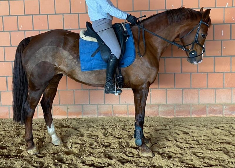 We are selling our Mecklenburg mare Donna due to a reorientation in equestrian sport. Donna has a very good, consistent jumping technique, which makes her particularly good in style jumping. She also masters a confident outside canter and flying changes. Donna has an appealing go, but is always manageable. She has been ridden exclusively by amateurs/young riders. For She is not suitable for beginners due to her strong temperament. We can well imagine her in the A-L level for youngsters from 14 years of age (depending on ability, even earlier) or amateurs with competition ambitions. Donna is absolutely fearless and is not interested in environmental stimuli. She jumps everything from ditches and walls to any kind of fences. In training, Donna also jumps a medium (M) course well, but I don't have the nerve to take her to this level of competition. Donna is not being sold as an event horse because she gets too fidgety in dressage, especially at the walk. The mare has limited herd compatibility and is allergic to oats, which does not cause any major problems if handled appropriately. Further information and videos on request. Please contact us via WhatsApp or by phone at +0049 1749431491.