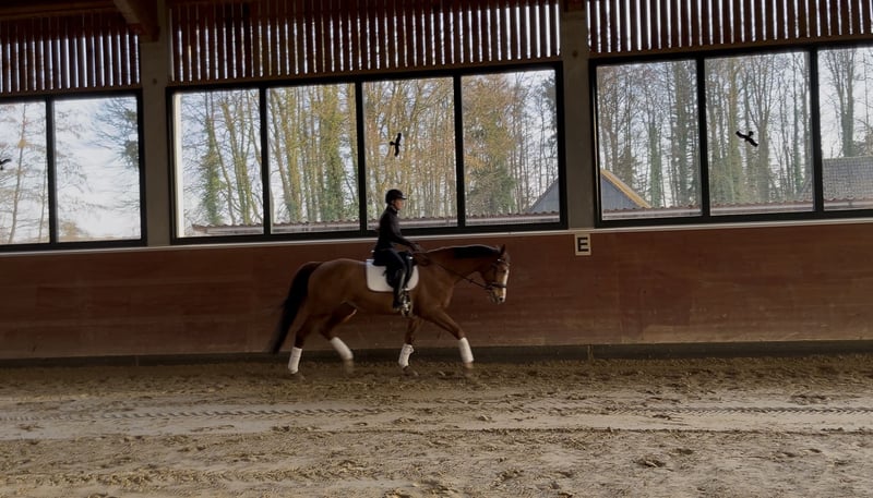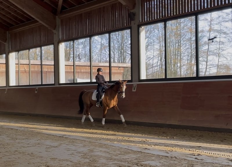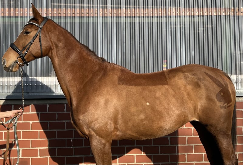 Mecklenburger Stute (2010) – Hannoveraner Zuchtbucheintragung – erfahrene Zuchtstute & feines Reitpferd Zum Verkauf steht meine typvolle Mecklenburger Stute Fürstin Dejana, geboren 2010, mit einem Stockmaß von 166 cm. Sie ist als Zuchtstute im Hannoveraner Verband eingetragen. Dejana hat bereits mehrere Fohlen bekommen, zuletzt 2024 (dieses befindet sich ebenfalls noch in meinem Besitz). Laut Vorbesitzer verliefen alle Geburten stets unkompliziert und problemlos. Sie ist eine zuverlässige, erfahrene Mutterstute mit guter Aufzuchtleistung und eignet sich somit weiterhin für die Zucht. Ich habe sie ursprünglich als Zuchtstute übernommen und anschließend wieder als Reitpferd angeschoben. Unter dem Sattel zeigt sie sich fein an den Hilfen, motiviert und mit angenehmem Go. Stutentypisch hinterfragt sie gelegentlich, bleibt dabei jedoch jederzeit händelbar und fair. Mit klarer, ruhiger Führung arbeitet sie sehr schön mit. Im Gelände war ich bisher überwiegend in Begleitung unterwegs, daher kann ich zum Alleinausreiten keine verbindliche Aussage treffen. Absolut vorbildlich ist sie beim Verladen – ich fahre im Winter nahezu täglich alleine mit ihr zur Reithalle, sie geht problemlos und selbstständig auf den Anhänger. Der Verkauf erfolgt ausschließlich aus Zeitmangel. Sie wird nur in wertschätzende Hände abgegeben, die ihr weiterhin eine Aufgabe geben – ob in der Zucht oder als Reitpferd. Ein probereiten ist natürlich möglich. Um reittourismus entgegen zu wirken behalte ich mir vor 25€ für das probereiten zu nehmen das Geld wird bei Kauf selbstverständlich verrechnet. Eine AKU kann jederzeit auf eigen Kosten und mit eigenem oder unserem Tierarzt erfolgen. Ebenfalls könnten ihre beiden Sättel (Ikonic Dressursattel und Prestige springsattel) mit erworben werden. Platz vor Preis Preis ist vb Bei ernsthaftem Interesse freue ich mich über eine Kontaktaufnahme mit kurzer Vorstellung. Gerne über WhatsApp unter 017622663586
