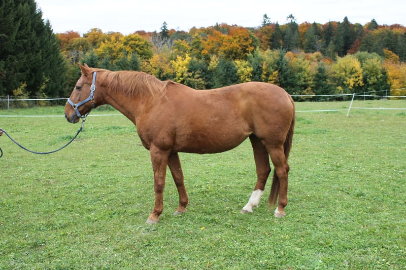 Chriwen – elegante Fuchsstute mit feinem Wesen (Contender x Donnerwetter) Zum Verkauf steht unsere Stute Chriwen, geboren am 18.04.2009, ca. 1,64 m groß. Sie ist eine hübsche, feinfühlige Fuchsstute mit bester Abstammung und einem großen Herz. Chriwen ist sensibel, zuverlässig und immer bemüht, es ihrem Reiter recht zu machen. Sie hat Temperament, bleibt aber händelbar und gelassen – auch nach Pausen. Ausgebildet bis A-Niveau und 5jährig auf Turnieren gestartet. Nach einer Hufrehe im Februar letzten Jahres wurde sie im Frühling wieder angeritten, steht aber seit Juni wegen meines Schlaganfalls erneut in Pause. Sie sucht nun einen liebevollen Platz, wo sie mit Gefühl weiter aufgebaut und gefördert wird. Weitere Infos gern auf Anfrage – nur in gute Hände abzugeben.