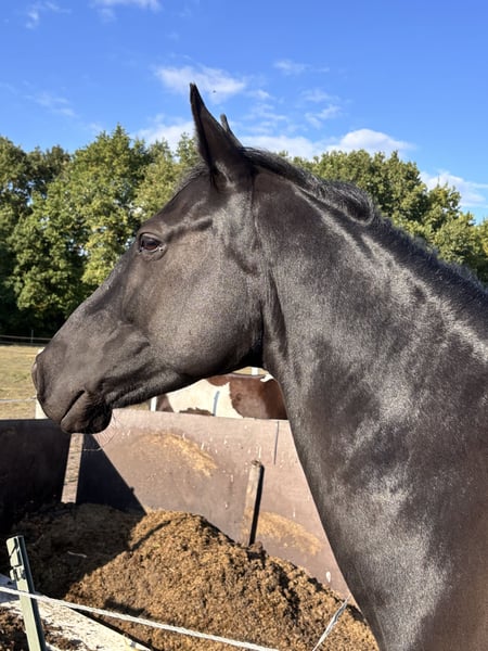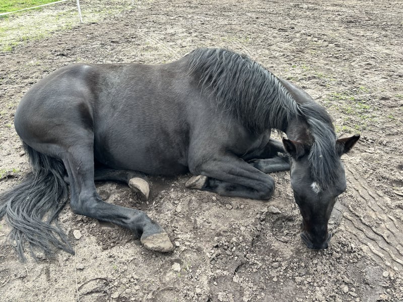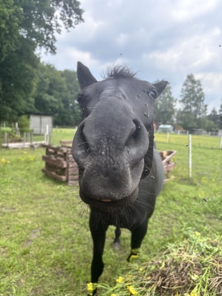 Rappstute 28.04.2017 zu verkaufen. Stockmass 1,58. Aus gesundheitlichen Gründen habe ich mich entschlossen meine Stute in gute Hände zu verkaufen. Sie steht im Offenstall und das würde ich mir auch zukünftig für sie wünschen da sie in der Box unglücklich ist. Sie bewegt sich eigentlich immer und braucht dies auch. Sie ist freizeitmässig eingeritten und geht gerne ins Gelände und dies auch alleine. Allerdings ist sie sehr schreckhaft und braucht daher einen sattelfesten Reiter. Die letzten 2 Jahre wurde sie nur in Boden- und Freiarbeit beschäftigt. Dies reicht ihr auf Dauer nicht. Deswegen ist der Rücken auch momentan nicht ausreichend bemuskelt. Wenn sie Vertrauen aufgebaut hat, ist sie ein starker Partner. In der Herde ist sie ranghoch. Sie läuft barhuf und ist beim ausschneiden im hufschmiedtermin sehr lieb. Fragen gerne per Nachricht an mich.