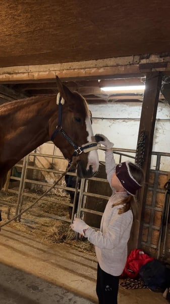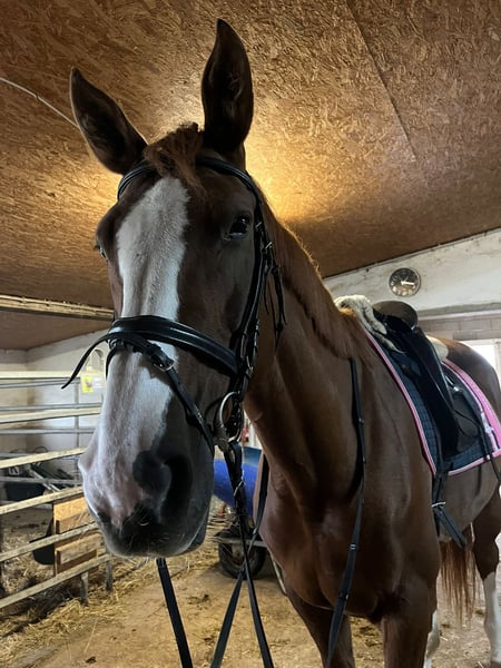 🌸 Fleur – Charming Chestnut Mare with Heart, Talent, and Kid-Friendly Temperament 🌸 We are offering Fleur, a very special 8-year-old chestnut mare, for sale. She impresses not only with her talent but especially with her exceptionally sweet nature. Fleur is a completely reliable partner in handling, and she consistently remains calm, friendly, and well-behaved, especially in contact with children. She has already competed successfully in E-level show jumping with children, demonstrating ambition, composure, and enjoyment in her work. In dressage, Fleur possesses all the qualities one could wish for: she has already competed up to A* level and shows great potential for further tests. She has won several young rider competitions with children, earning top scores up to 8.0, highlighting her rideability and reliability. Beyond her sporting versatility, Fleur scores with her straightforward nature: - Easy to load - Well-behaved in daily handling - People-oriented, affectionate, and attentive Fleur is a mare you simply have to fall in love with. She captivates with her gentle demeanor, stunning exterior, and honest character. Whether as a children's or junior horse, a reliable partner, or a loving leisure and sport horse – Fleur is a true heart horse that brings joy to her owner every day. A current health certificate is also available! 📍 Only to caring and loving hands 📩 Serious inquiries are welcome via message.