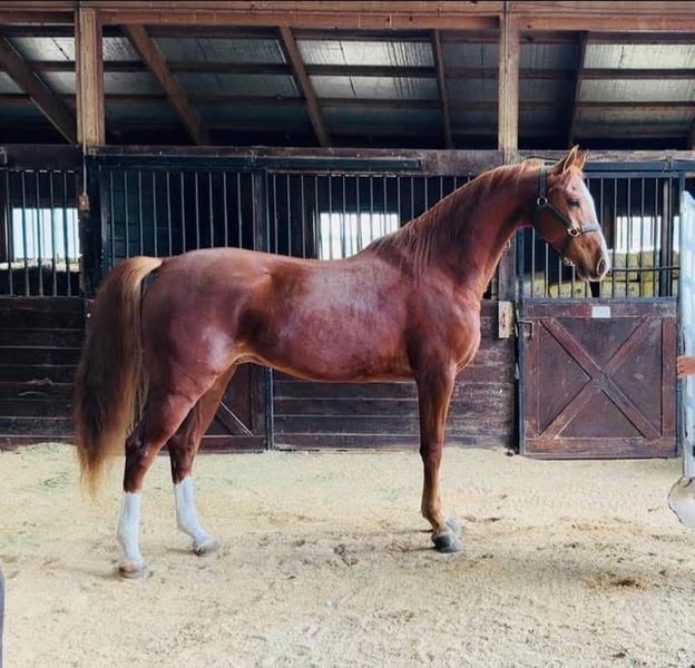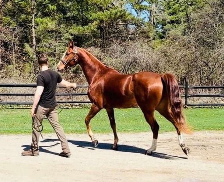 If you are looking for the fanciest horse on the trail or a horse to show in a lot of disciplines, look no further --- Half-Arabian 4 Year Old gelding In TheSpotlight SS (Inception x Stylish Contessa by Undulata's Nutcracker). Plenty big and sturdy to go anywhere, anytime. Sweet heart horse disposition. Great learner, wants to be your buddy. Located in Michigan. 15.1h 900lbs chestnut 4/2022 gelding HAHR*1A383081 Call Marty Shea (2012 USEF Breeder of the Year) 810-650-1867