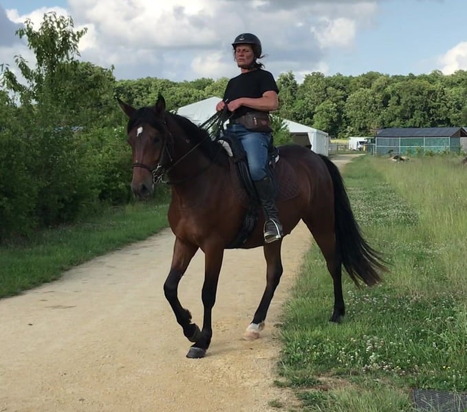 Este simpático potro lusitano-árabe (Cruzado) castaño tiene largas crines negras y abundantes. Su morfología es alargada pero equilibrada y armoniosa. Su hermosa cabeza, con frente ancha y perfil recto, está sostenida por un cuello largo y esbelto. Este joven macho castrado tiene aires elevados con una bonita amplitud y una propulsión heredada de su padre. Elegante en movimiento, combina redondez, flexibilidad y equilibrio. Con una personalidad entrañable, Mikado se muestra poco impresionable, muy equilibrado y zen. Curioso e ingenioso, disfruta de la compañía del ser humano y busca complacer. Caballo de deporte polivalente en desarrollo, alcanzará de adulto entre 1,55 y 1,60 m. La elasticidad y el compromiso de sus aires representan ventajas tanto para el doma como para el salto (CSO-CSE), la doma clásica o la resistencia. Montado desde marzo de 2025, también se trabaja en libertad, a pie y con largas riendas. Su precio evoluciona con el avance del trabajo. Como todos nuestros caballos, Mikado está vacunado, desparacitado, suplementado y recibe seguimiento dental y osteopático regularmente. Todos nuestros potros son manipulados, criados en grupo y, sobre todo, destetados tardíamente alrededor de los 10 u 11 meses para su equilibrio. Varios otros caballos están disponibles para la venta en la cría y se pueden ver en el sitio del Haras du Grémillon. No duden en ponerse en contacto por SMS para más información.