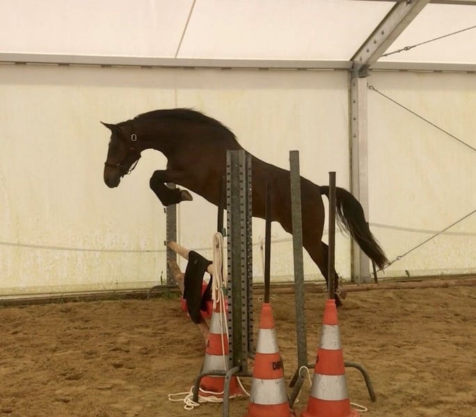 Dieser sympathische Lusitano-Araber (Cruzado) Fohlen ist ein Rappe mit langen, schwarzen und üppigen Mähnen. Seine Morphologie ist langgliedrig, aber ausgewogen und harmonisch. Sein schöner Kopf mit breiter Stirn und geradem Profil wird von einem langen, schlanken Hals getragen. Dieser junge Wallach hat gehobene Gangarten mit schöner Amplitude und Antrieb, die er von seinem Vater geerbt hat. Elegant in der Bewegung vereint er Rundung, Flexibilität und Balance. Mit einer charmanten Persönlichkeit zeigt sich Mikado wenig beeindruckbar, sehr ausgeglichen und gelassen. Neugierig und schlau schätzt er die Gesellschaft des Menschen und bemüht sich, Freude zu bereiten. Als vielseitiges Sportpferd in der Entwicklung wird er im Erwachsenenalter zwischen 1,55 und 1,60 m groß sein. Der Schwung sowie das Engagement seiner Gangarten stellen Vorteile für die Dressur, aber auch für das Springen (CSO-CSE), die Arbeit an der Hand oder die Vielseitigkeit dar. Seit März 2025 ist er angeritten und wird auch an der Longe, am Boden und in Freiheit gearbeitet. Sein Preis entwickelt sich mit dem Fortschritt der Ausbildung. Wie alle unsere Pferde ist Mikado geimpft, entwurmt, ergänzt und wird regelmäßig zahnmedizinisch und osteopathisch betreut. Alle unsere Fohlen werden gehandhabt, in Gruppen aufgezogen und vor allem spät, etwa mit 10 oder 11 Monaten, abgesetzt, um ihr Gleichgewicht zu fördern. Mehrere andere Pferde sind zum Verkauf im Zuchtbetrieb verfügbar und auf der Website des Haras du Grémillon einsehbar. Zögern Sie nicht, per SMS Kontakt aufzunehmen, um weitere Informationen zu erhalten.