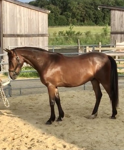 Questo simpatico puledro lusitano-arabo (Cruzado) baio possiede lunghi crini neri e folti. La sua morfologia è longilinea ma equilibrata e armoniosa. La sua bella testa con fronte largo e profilo rettilineo è sostenuta da un collo lungo e snodato. Questo giovane gelding ha andature elevate con una bella ampiezza e una propulsione trasmessa da suo padre. Elegante in movimento, unisce rotondità, flessibilità ed equilibrio. Con una personalità affascinante, Mikado si dimostra poco impressionabile, molto equilibrato e zen. Curioso e astuto, apprezza la compagnia dell'uomo e cerca di fare piacere. Cavallo sportivo polivalente in divenire, raggiungerà da adulto un'altezza tra 1,55 e 1,60 m. Il rimbalzo e l'impegno delle sue andature rappresentano vantaggi per il dressage ma anche per il salto (CSO-CSE), il lavoro in piano o l'endurance. Sella da marzo 2025, viene anche lavorato in libertà, a terra e con le lunghe redini. Il suo prezzo evolve con l'avanzamento del lavoro. Come tutti i nostri cavalli, Mikado è vaccinato, sverminato, integrato e seguito regolarmente in odontoiatria e osteopatia. Tutti i nostri puledri sono maneggiati, allevati in gruppo e soprattutto svezzati tardivamente intorno ai 10 o 11 mesi per il loro equilibrio. Diversi altri cavalli sono disponibili in vendita presso l'allevamento e visibili sul sito del Haras du Grémillon. Non esitate a contattare via SMS per ulteriori informazioni.