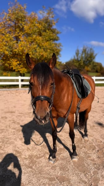 Verkauf Araber-Haflinger Mix : Toffee Geboren am 23.03.2016 Stockmaß 147 cm Ich muss mich aus zeitlichen und persönlichen Gründen von meinem geliebten Pferd Toffe trennen. Toffee ist ein absolutes Verlass-Pferd, die nicht steigt und niemanden abwirft. Sie ist sehr lernwillig, zeigt aber gelegentlich auch ihre eigene Meinung – daher kein Pferd für Anfänger. Im Gelände ist sie absolut zuverlässig und freut sich, wenn man auch mal quer durch den Wald reitet. Toffee ist die Herde gewöhnt. Im Umgang mit Kindern ist sie super lieb und zugewandt. Ausritte mit Hund sind für sie auch kein Problem. Beim Schmied/Hufpflege (Toffe ist Barhufer) und auch beim Tierarzt ist sie sehr brav. Toffee ist ein wunderschöner Rohdiamant mit freundlichem Charakter, der noch viel Potenzial hat. Ich suche für sie einen Bestplatz, für einen erfahrenen und einfühlsamen Reiter, wo sie die Zeit und Förderung bekommt, die sie braucht und verdient hat. Selbstverständlich ist Toffee regelmäßig entwurmt worden. Im Dezember 2025 hat sie einen neuen Sommer Sattel bekommen. Dieser muss zwingend mit verkauft werden. Toffee 8000€ Sattel neu 2,900€ muss für 2,500€ übernommen werden
