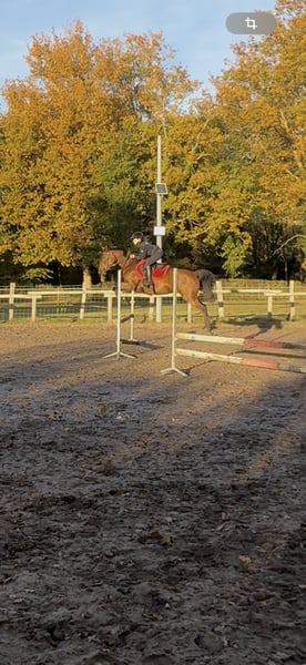 For Sale: Pony Mare D OC Bohème Des Franchise 14-year-old mare, 14.2 hh, chestnut Gentle, energetic but without vices Very good mouth, no forceful reactions (Accessible with a guided trot of level 3) Housed in a pasture all year round, somewhat dominant with her paddock mate Shoed on the front legs Participated in club show jumping (4 / P3 / P4) several years ago Could easily be brought back to P1/Pelite level with regular training Previously competed in TREC and endurance races Has also done some fun training sessions where she proved to be quick and agile! Suitable for hacking alone or in company Getting on the trailer may need some reinforcement, as she hasn't been transported for years Up to date on vaccines, osteopath, farrier, deworming, and dentist (Video of an 11-year-old rider riding her bareback) Visible in the Loiret (45)