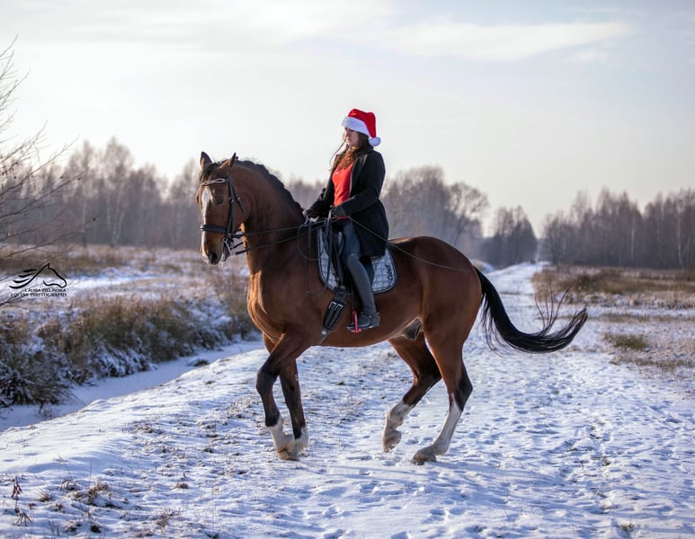 Suche ein neues Zuhause für einen 14-jährigen Wallach der Rasse Szlachetna Polska (SP), 171 cm groß im Widerrist. Dieser Hengst hat mich mehr gelehrt, als ich je zu träumen gewagt hätte. Wir kennen uns seit seiner frühen Jugend: Meine Familie hat ihn als rohen vierjährigen von einem Züchter gekauft. Mit ihm begann ich meine Reitkarriere im Jahr 2016. Ich startete mit ihm meine ersten Dressurwettbewerbe in der Klasse P, und seit einigen Jahren nehmen wir gemeinsam an Wettbewerben der Kleinen Runde teil. Für die richtige Person ist er ein wunderbarer Partner im Training und im Alltag. Er eignet sich auch für ambitionierte Junioren oder junge Reiter. Er hat mit dem Training von Piaffe, Passage und fliegenden Wechseln begonnen. Er springt gerne, obwohl er in diesem Bereich noch nicht besonders gefördert wurde, doch Freispringen zeigt, dass er großes Potenzial besitzt. Dank solider Grundausbildung im Dressurbereich ist er in der Lage, frei auf die Hindernisse zuzufahren. Derzeit arbeitet er auch mit weniger erfahrenen Reitern. Er ist gesund, auf der Koppel, regelmäßig geimpft, entwurmt und vom Tierarzt untersucht, zudem hat er einige Kunststücke gelernt. Das Pferd kann in der Nähe von Warschau, im Gebiet um Czosnów, besichtigt werden. Der Preis ist verhandelbar. Es besteht die Möglichkeit, ihn inklusive Ausrüstung zu verkaufen.