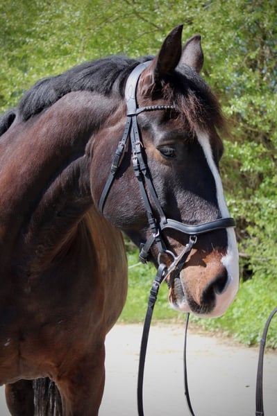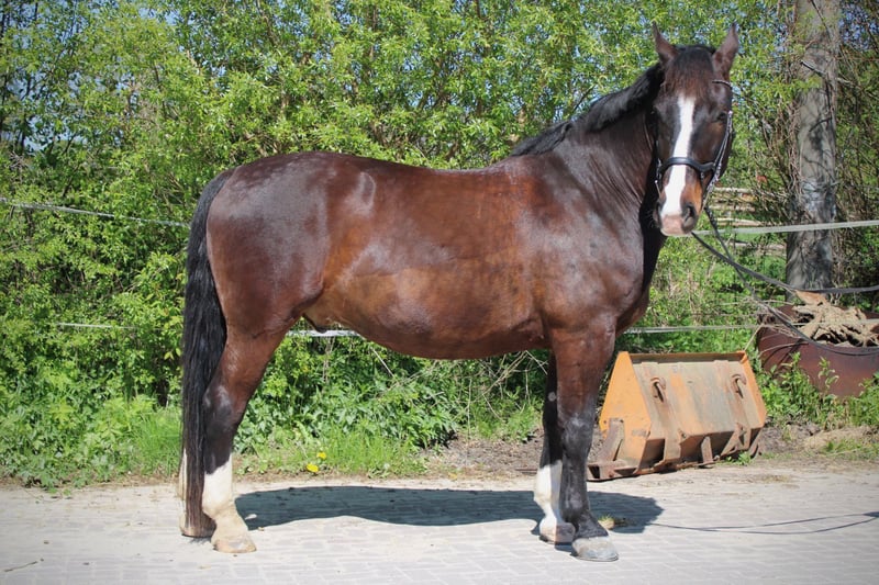 Aus Zeitgründen verkaufen wir unseren Wallach, den wir 3jährig mit kleiner AKU gekauft haben. Er ist sehr menschenbezogen , neugierig und nervenstark. Er wird regelmäßig von einer 19jährigen sowie Bereiterin geritten. Am liebsten geht er ins Gelände, momentan nur mit Zweitpferd. In der Halle oder Platz sinkt seine Motivation, hier ist Anfangs Durchsetzungsvermögen gefragt und dann läuft er auch sehr gut. TA, Hufschmied ist alles kein Problem. Er ist Barhufer, kennt aber Beschlag. Im Gelände trägt er vorne Hufschuhe. Er ist kein Anfängerpferd.