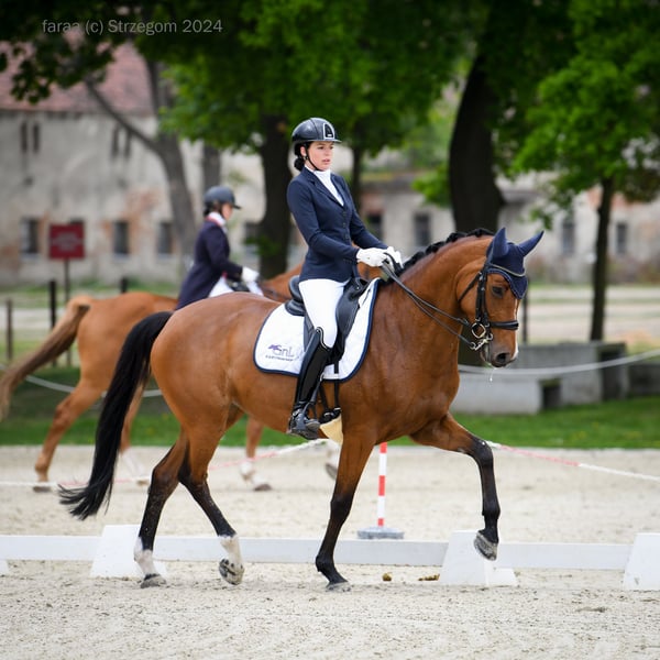 Estamos buscando un nuevo hogar para nuestra hermosa, joven y dulce yegua Cassis. Ha competido en la pequeña gira (65-68%) y ya ha comenzado a aprender movimientos de Gran Premio. Está con nosotros desde que tenía 6 años, antes de eso era saltadora de obstáculos. "Cassie" es realmente inteligente, trabajadora y de fácil manejo. Perfecta para un jinete junior o joven. Tiene 3 aires realmente buenos. A solicitud, puedo enviar videos de entrenamiento o de competiciones. Ubicada en Polonia, Wrocław.