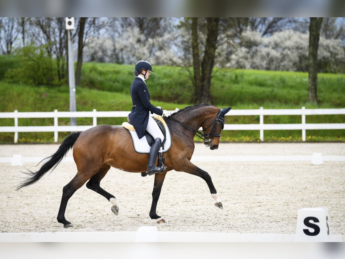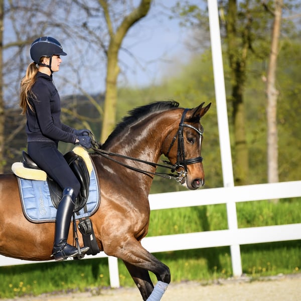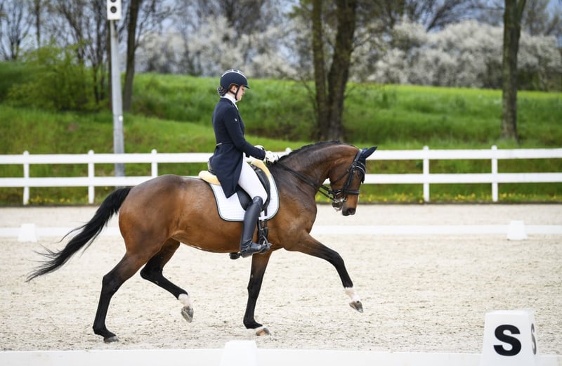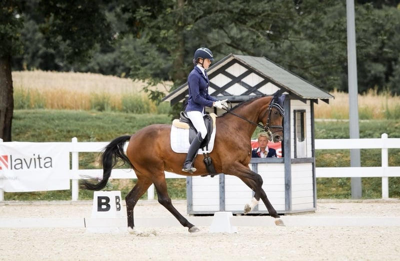 12 letnia klacz ujezdzeniowa po Quatergold/Quaterback. Wyszkolona na poziomie C klasy z elementami CC. Robi łopatki, ciągi, trawersy, lotne zmiany nogi, podejścia pod piruety i zaczyna lotne zmiany nogi w seriach. Startowała w zawodach pod dzieckiem i dorosłym. Idealna na kat. dzieci.